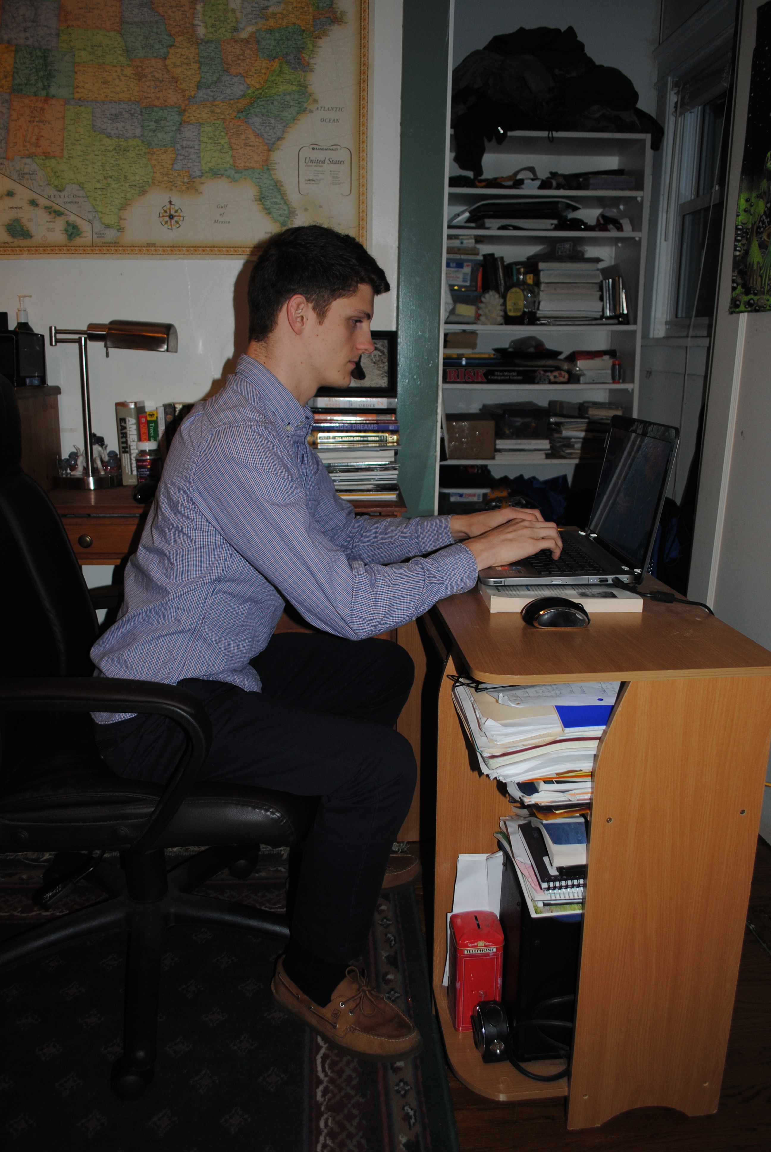 2) Know that your head, neck and torso won’t cooperate in staying open and up unless you are allowing your sits bones to point towards your seat away from your head. It is true whether you sit upright or lean forward towards your desk.