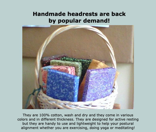 Active Resting CD for Posture Improvement! Send an email to Cécile and she will respond with options of headrests available to you. $ 30 per headrest regardless of the size which needs to be assessed for your needs from 1 inch to 2 inches Share this: Click to share on X (Opens in new window) X Click to share on Facebook (Opens in new window) Facebook Like Loading...